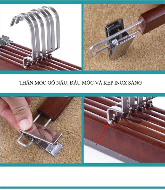Giới thiệu COMBO 20 KẸP QUẦN GỖ NÂU - MÓC TREO QUẦN ÁO
