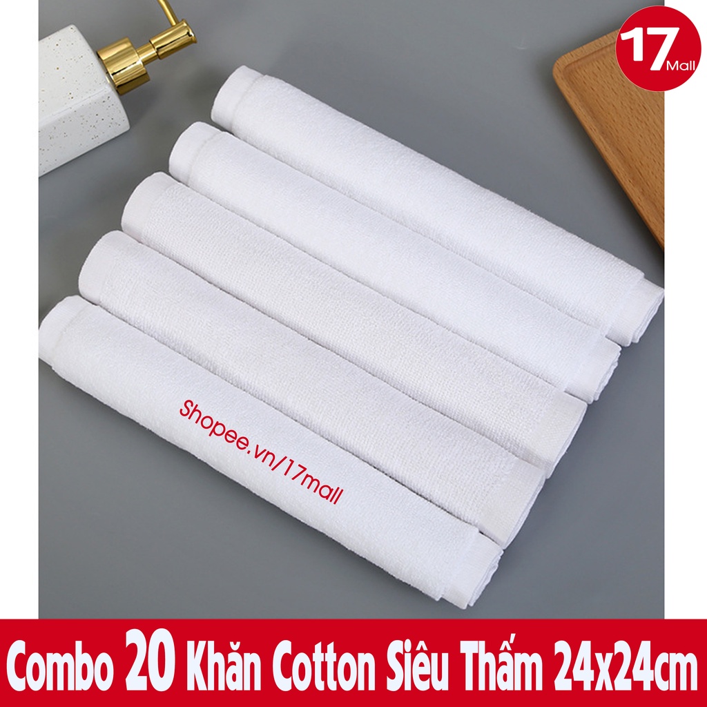 Nhà cửa & Đời sống > Dụng cụ chăm sóc nhà cửa > Khăn vệ sinh || Combo 20 khăn trắng cotton 24x24 đa năng, khăn vuông lau bếp, xe ô tô, lau quán ăn, bệnh viện, spa, nail, trường họcCòn hàng