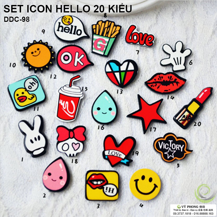 COMBO 20 KIỂU LOGO NHÍ NHỐ HELLO PHỤ KIỆN TRANG TRÍ CHỤP ẢNH SẢN PHẨM DDC-98