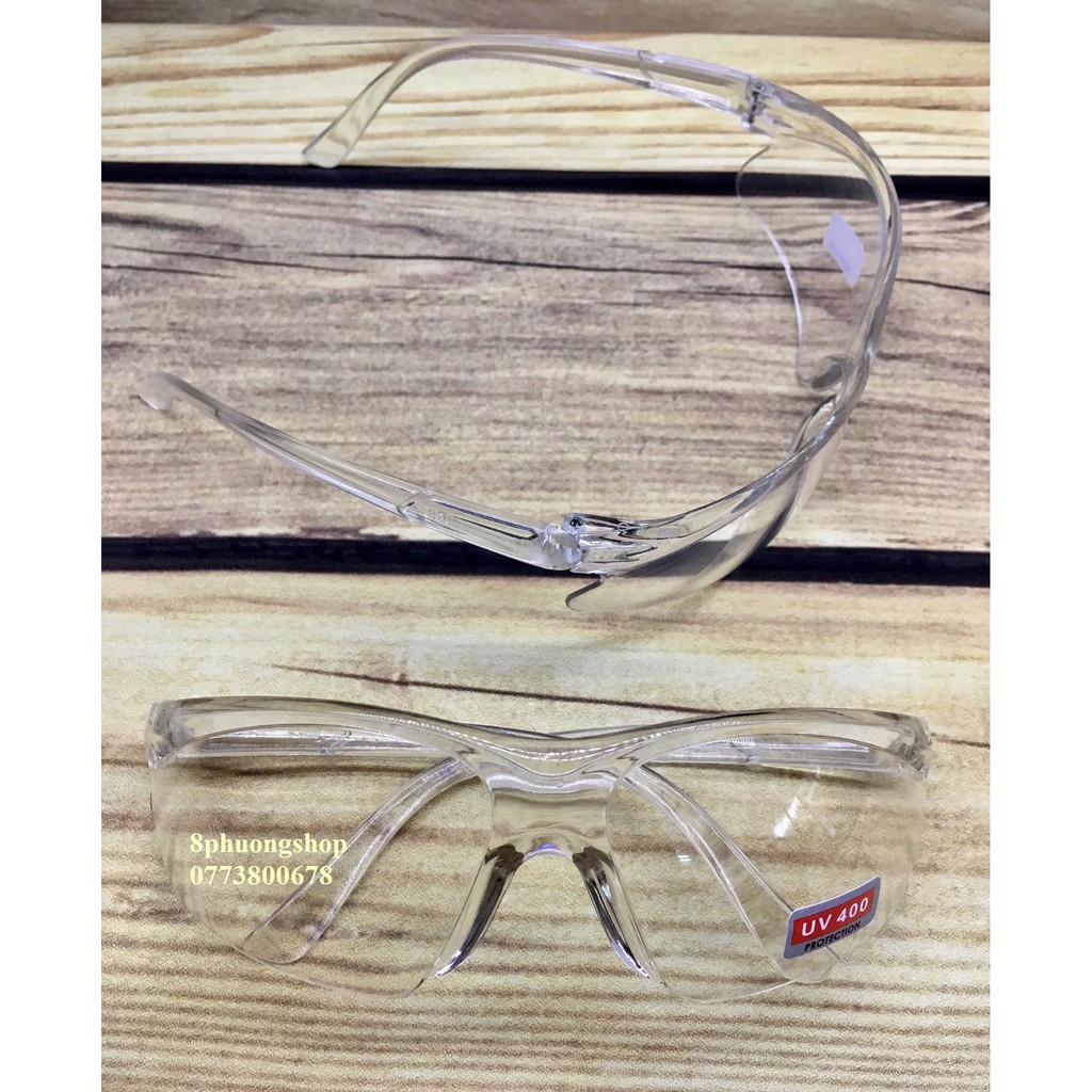 - Kính bảo hộ trắng, sản phẩm đi đường chống bụi tốt, ôn sát mặt, ngoài ra còn đc sử dụng như kính trong nhà bếp giúp người nội trợ khỏi bị cay mắt bởi hành tỏi