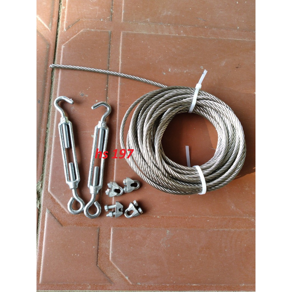 Nhà cửa & Đời sống > Dụng cụ chăm sóc nhà cửa > Dây phơi & giá phơi quần áo || Combo 20 mét Dây Cáp inox 304 xịn loại 5mm Dây phơi dây tời không han tặng kèm 4 khóa cáp và 2 tăng đơCòn hàng