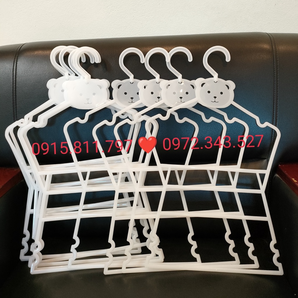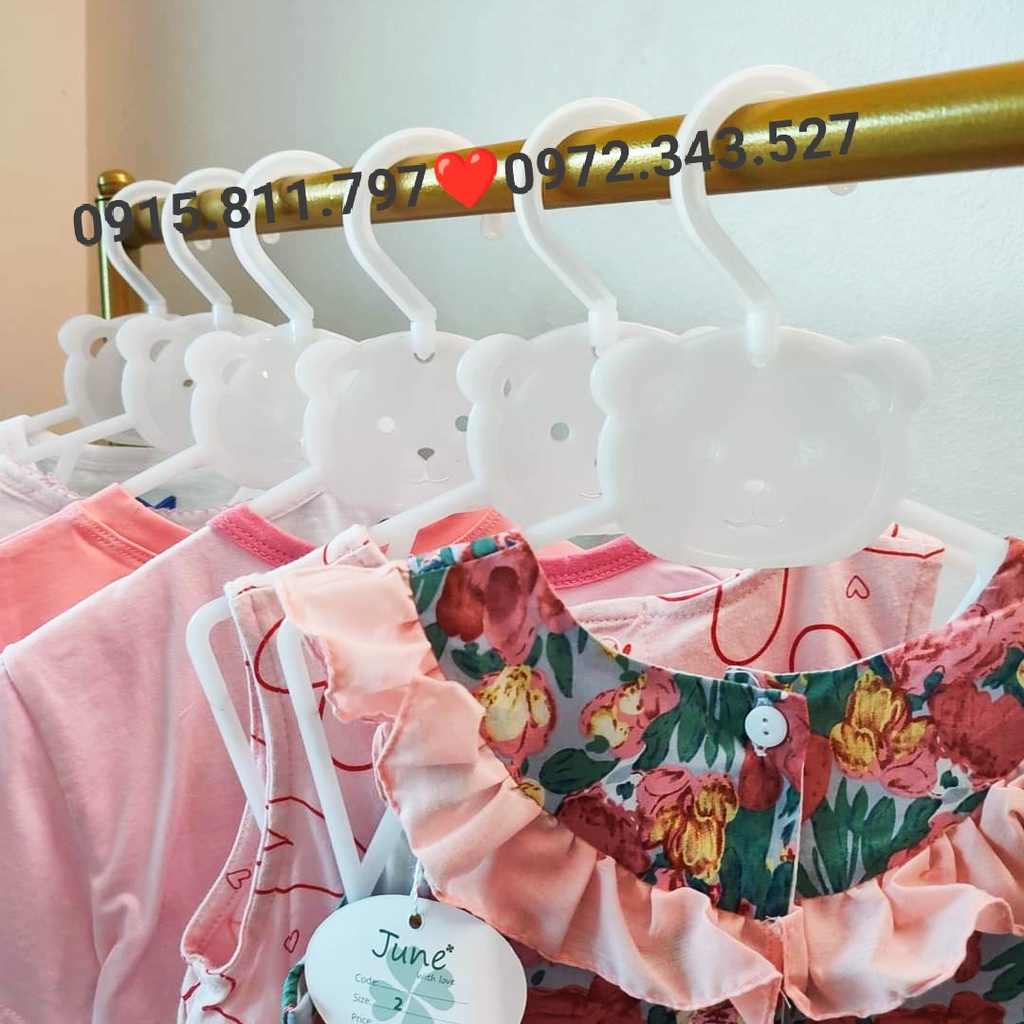 Combo 20 móc bộ trẻ em in mặt gấu to và 20 móc bộ gấu nhỏ (size 4-7 tuổi và sz sơ sinh tới 3 tuổi),đầu móc xoay 360 độ