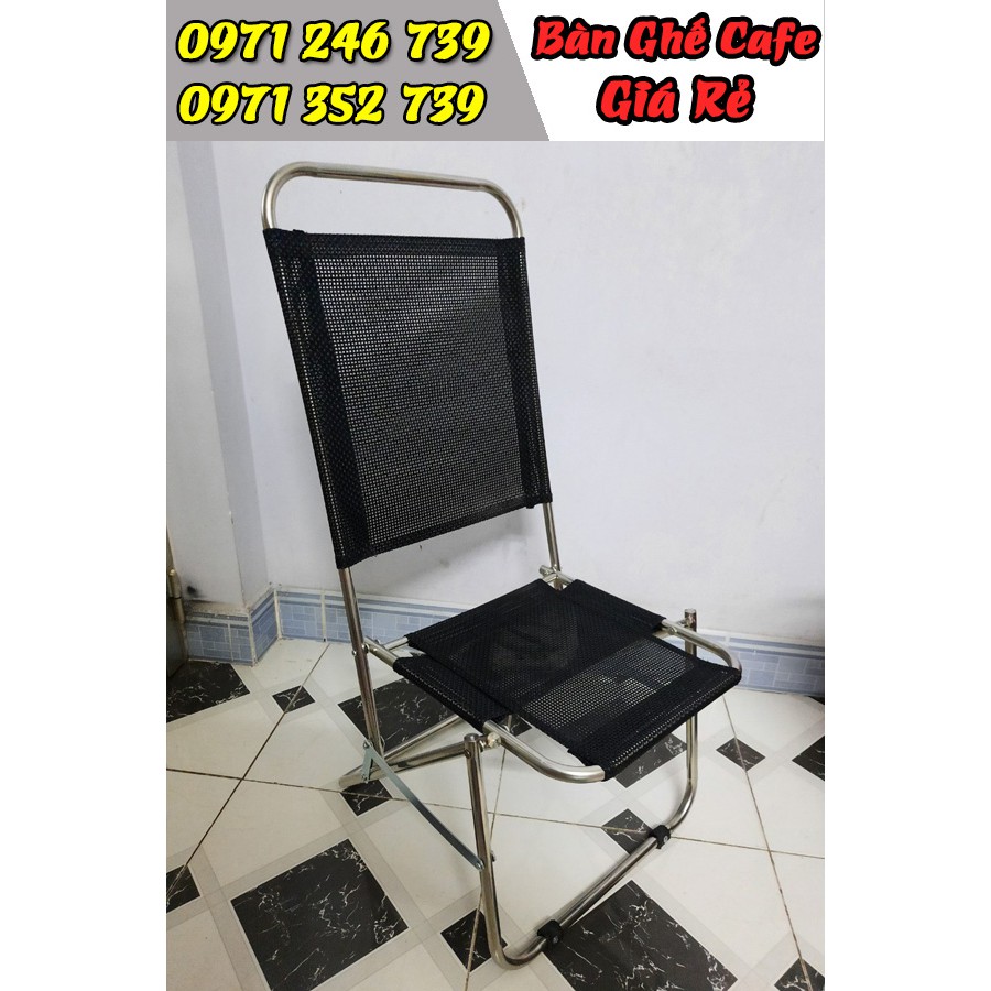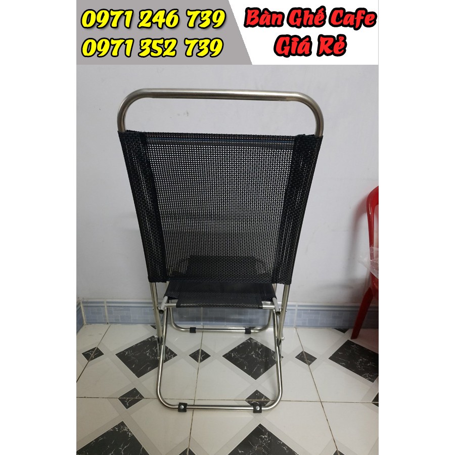 Ghế xếp có 2 loại : lưng cao ( chiều cao ghế 85 cm ) và lưng thấp( chiều cao ghế 67 cm )- Inox 201, dày 1 ly. Chịu lực trên 110 kg