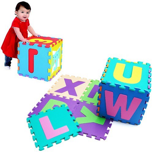 COMBO 26 MIẾNG THẢM XỐP LÓT SÀN HÌNH CHỮ CÁIThảm xốp lót sàn hình chữ cái có thiết kế các chữ cái với nhiều màu sắc khác nhau sẽ giúp cho bé tập làm quen với các chữ cái và nhận biết màu sắc ngay từ nhỏ. Mỗi miếng xốp được thiết kế với các đường nối nên có thể kết nối với nhau thành 1 tấm thảm hoặc ghép lại thành những khối vuông nhỏ hoặc các hình dạng khác tùy vào trí tưởng tượng của bé. Các họa tiết trên thảm có thể tách ra hoặc ghép vào một cách dễ dàng.