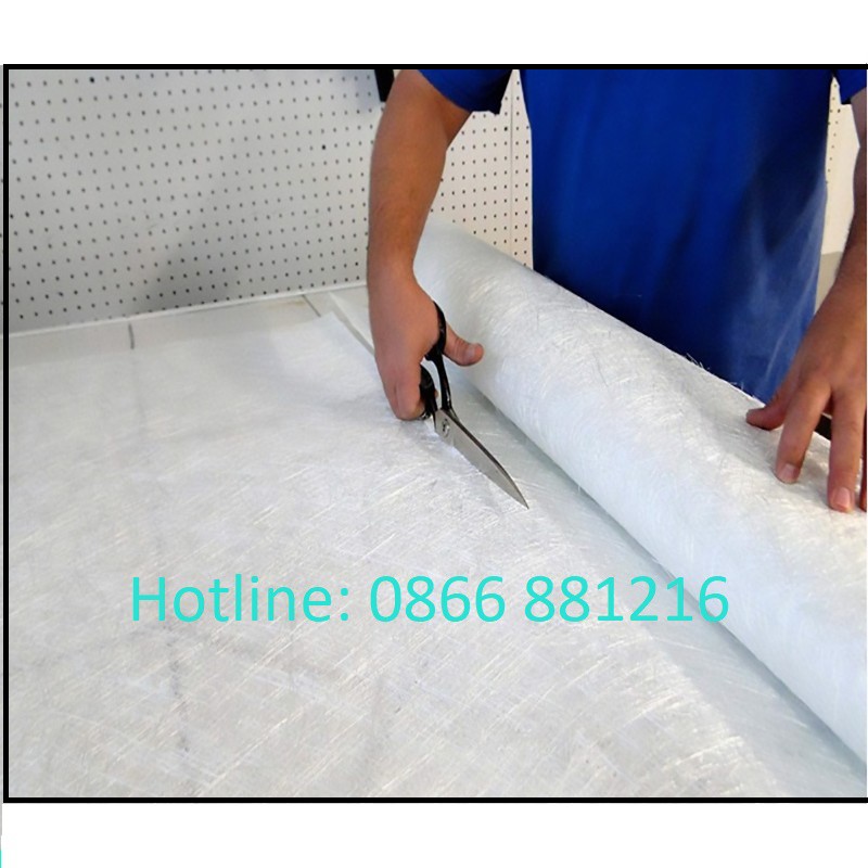 - Xé sợi thủy tinh, dùng chổi sơn dấp nhựa đã pha đông cứng dập lên bề mặt, dùng nhiều hay ít tùy thuộc vào người sử dụng muốn dày hay mỏng.