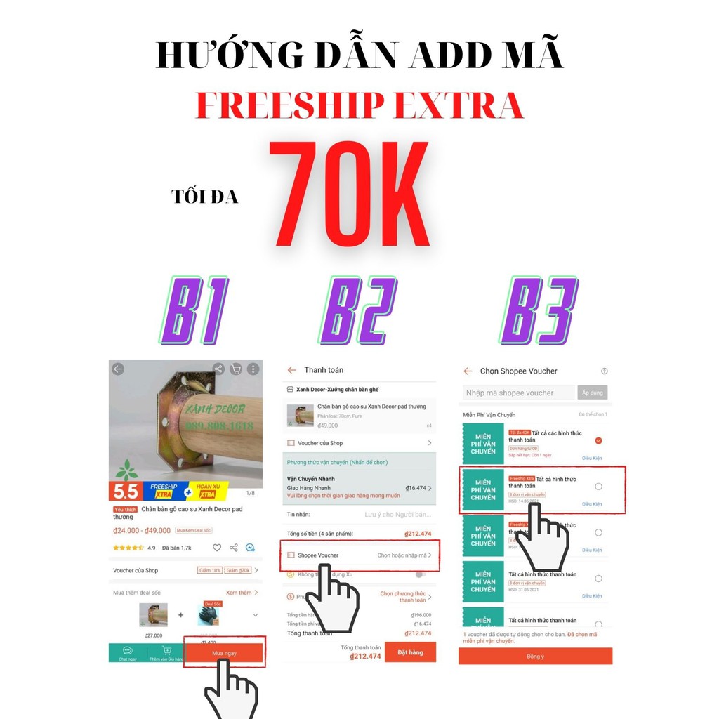 Các bạn nhớ add mã Freeship Extra của Xanh Decor để được hổ trợ phí vận chuyển lên đến 70k cho đơn hàng 300k.