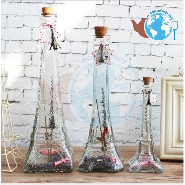 Combo 3 bình thuỷ tinh Tháp EIFFEL 3 size Đại Trung NhíSản phẩm gồm 3 chai thuỷ tinh: