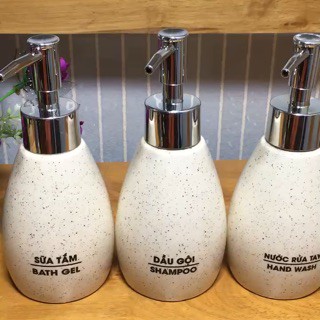 COMBO 3 Bình xịt đựng sữa tắm, dầu gội, xà phòng rử tay, đa năng sử dụng trong nhà tắm bằng sứ có chữ