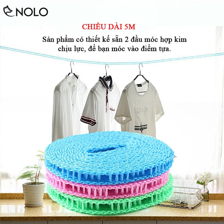 Combo 3 Bộ Dây Phơi Quần Áo Dài 5M Chất Liệu Nylon Đan Chịu Lực Chống Thấm Nước