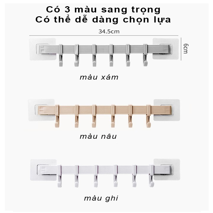 Combo 3 bộ móc treo dán tường nhà tắm nhà bếp 6 móc di động siêu chắc không khoan đục