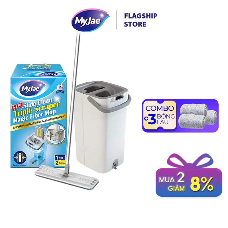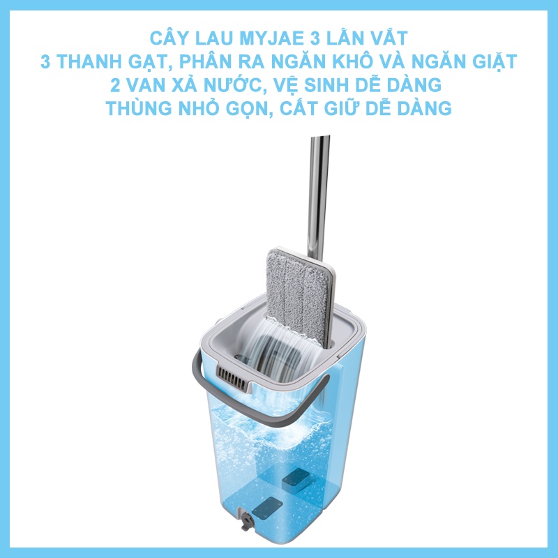 Nhà cửa & Đời sống > Dụng cụ chăm sóc nhà cửa > Cây lau nhà || Combo 3 bông lau + 1 cây lau nhà tự vắt kèm thùng 2 ngăn xoay 360 độ thông minh lau sạch nhanh khô MyJae Đài LoaCòn hàng