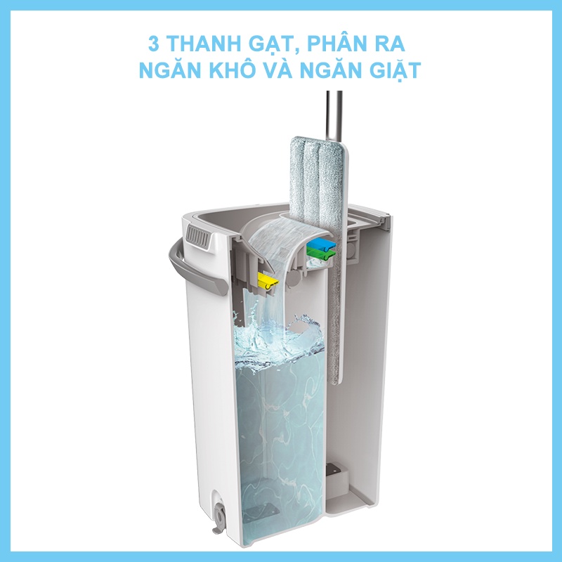 Combo 3 bông lau + 1 cây lau nhà tự vắt kèm thùng 2 ngăn xoay 360 độ thông minh lau sạch nhanh khô MyJae Đài Loa