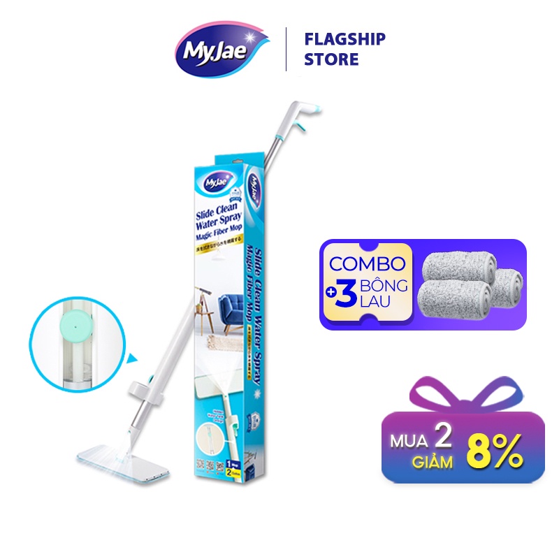 Nhà cửa & Đời sống > Dụng cụ chăm sóc nhà cửa > Cây lau nhà || Combo 3 bông lau + 1 cây lau nhà tự vắt phun sương MyJae Đài Loan thông minh lau sạch nhanh khôCòn hàng