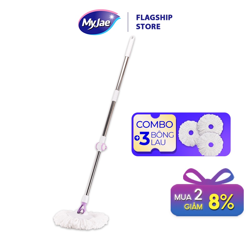 Nhà cửa & Đời sống > Dụng cụ chăm sóc nhà cửa > Cây lau nhà || Combo 3 bông lau + 1 cây lau nhà đơn MyJae sợi Microfiber xoay 360 độ phù hợp nhiều loại thùng lauCòn hàng