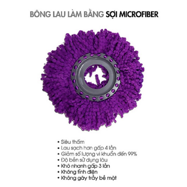 - Tháo lắp dễ dàng chỉ với một động tác đơn giản, sử dụng cho nhiều loại cây lau nhà khác nhau. Sợi bông dày có độ thấm nước vượt trội và khô nhanh hơn, sạch hơn so với các bông lau thông thường khác. Đầu bông lau xoay tròn 360 độ linh hoạt giúp lau sạch mọi ngóc ngách.