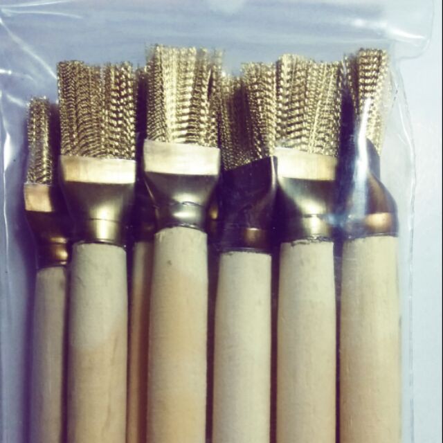Combo 3 Cây cọ chổi cước bằng đồng dùng để chà rỉ sét,vệ sinh xe,cán bằng gỗ (combo 3 cây)