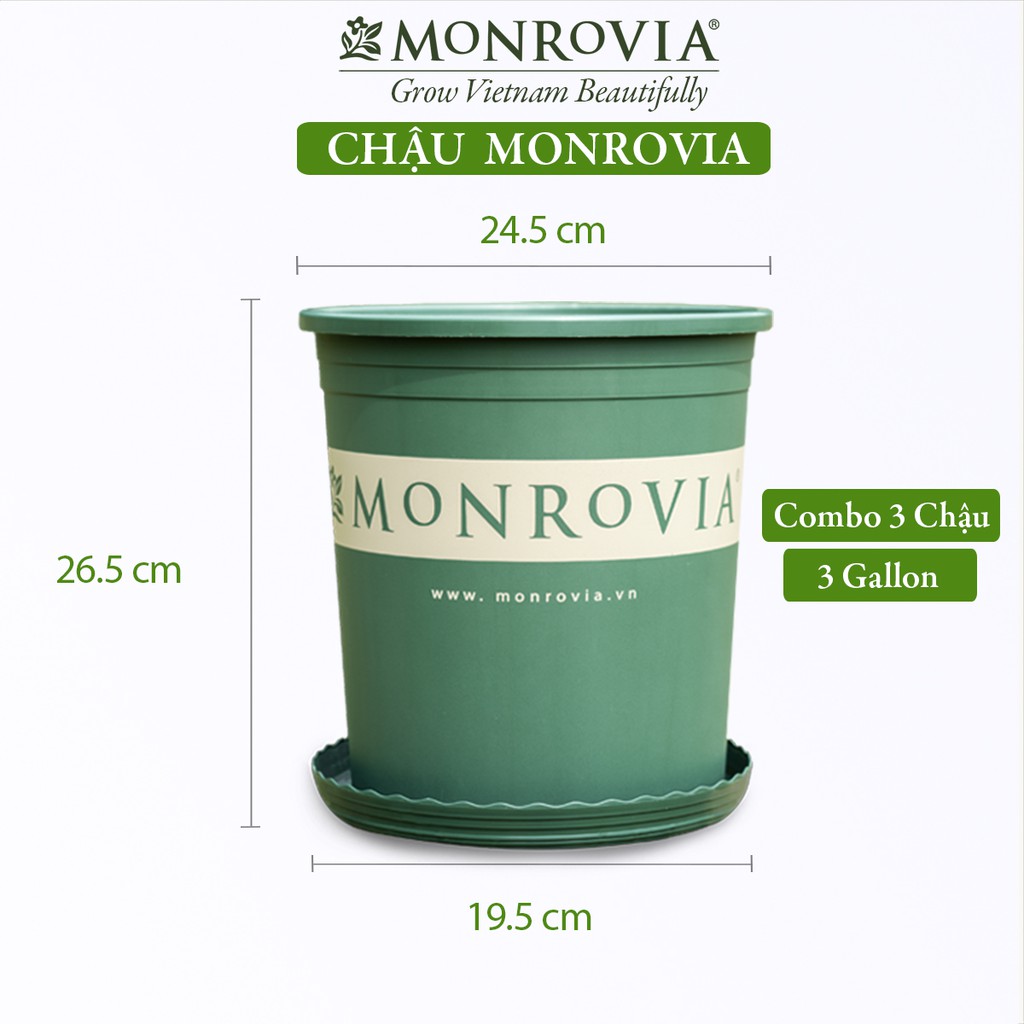 Combo 3 Chậu nhựa trồng cây MONROVIA 3 Gallon, để bàn, treo ban công, ngoài trời, sân vườn, tiêu chuẩn Châu Âu