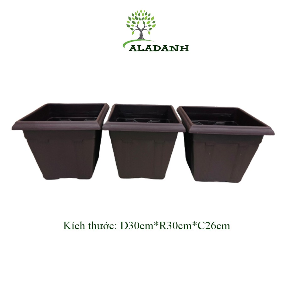 Combo 3 chậu nhựa vuông trồng cây hàng đẹp 30*30*26cm