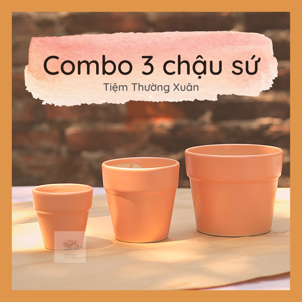 COMBO 3 CHẬU SỨ ĐỦ MÀU TRÁNG MEN - CHẬU ĐẠI - CHẬU TRUNG - CHẬU MINI