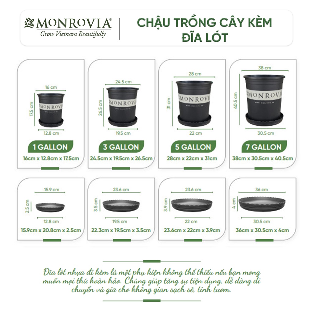 Nhà cửa & Đời sống > Làm vườn > Chậu cây || Combo 3 Chậu trồng cây MONROVIA màu đen, kèm đĩa lót, cây cảnh mini, trồng rau, hoa, để bàn, treo ban côngCòn hàng