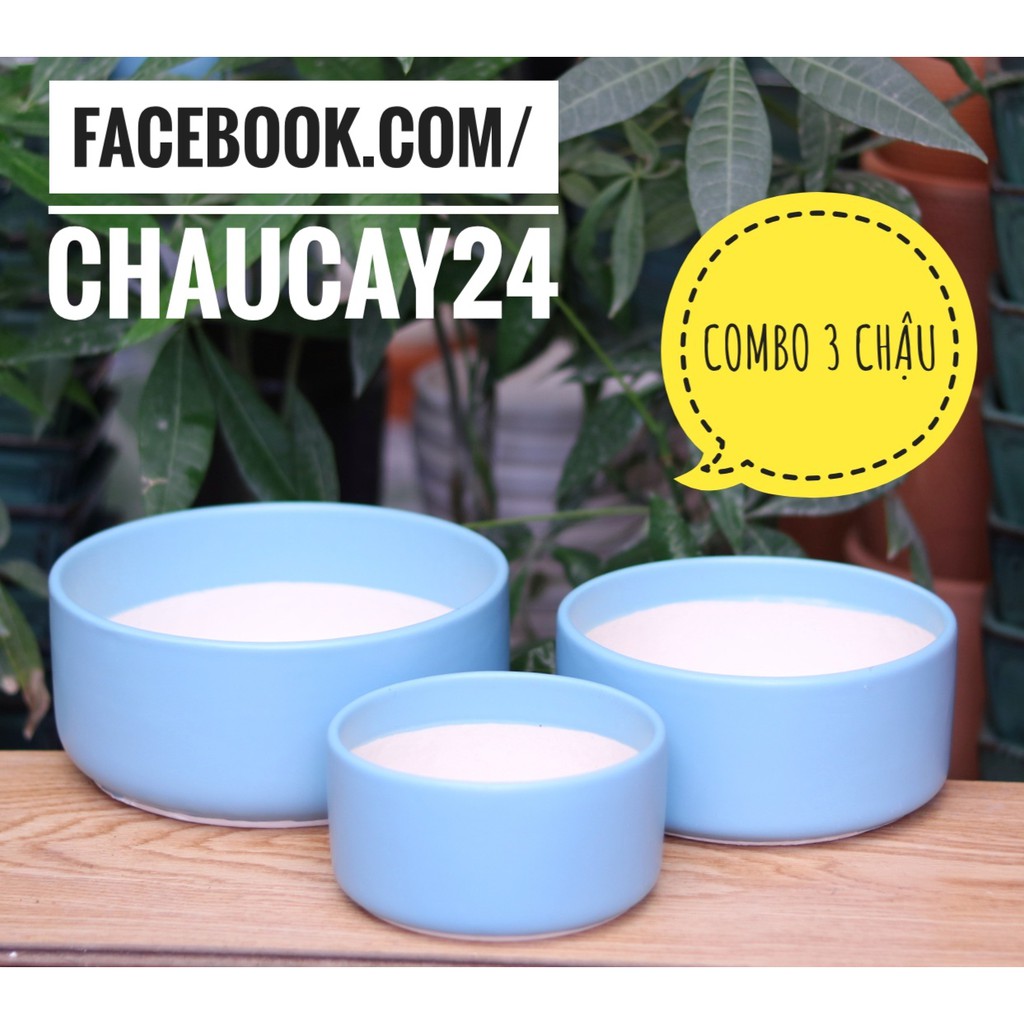 - COMBO trên bao gồm 3 sản phẩm : 01 Chậu trụ lớn (19x8 cm), Chậu trụ trung (16x7 cm) và 01 Chậu trụ nhỏ (13x6.5 cm).