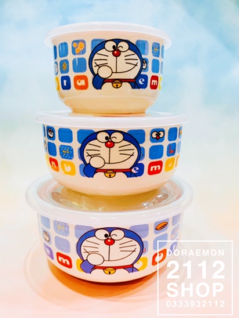 Nhà cửa & Đời sống > Bộ đồ bàn ăn > Tô || Combo 3 chén - Tô sứ có nắp DoraemonCòn hàng