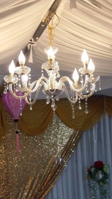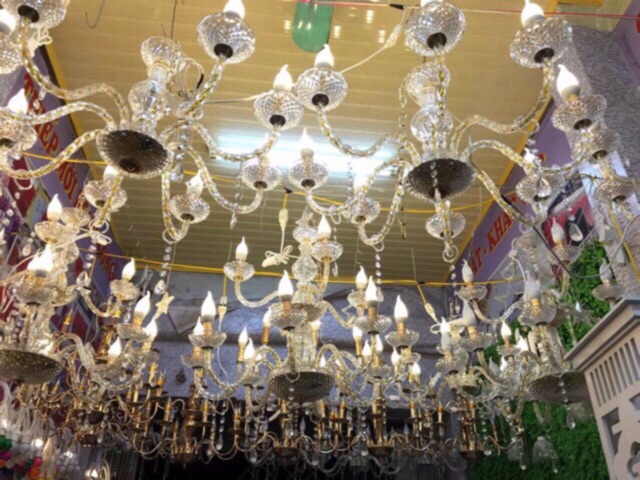 Sản phẩm được làm bằng nhựa Pvc cao cấp , độ trong suốt và bền như pha lê luôn . Đèn chùm giá rẻ này dùng trang trí nhà cửa , rạp đám cưới , các buổi party , decor phông , back drop ,