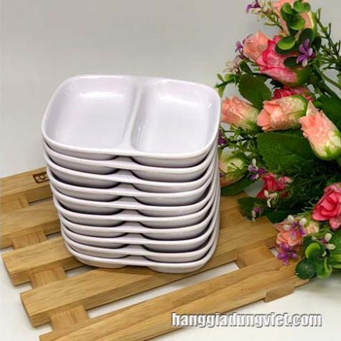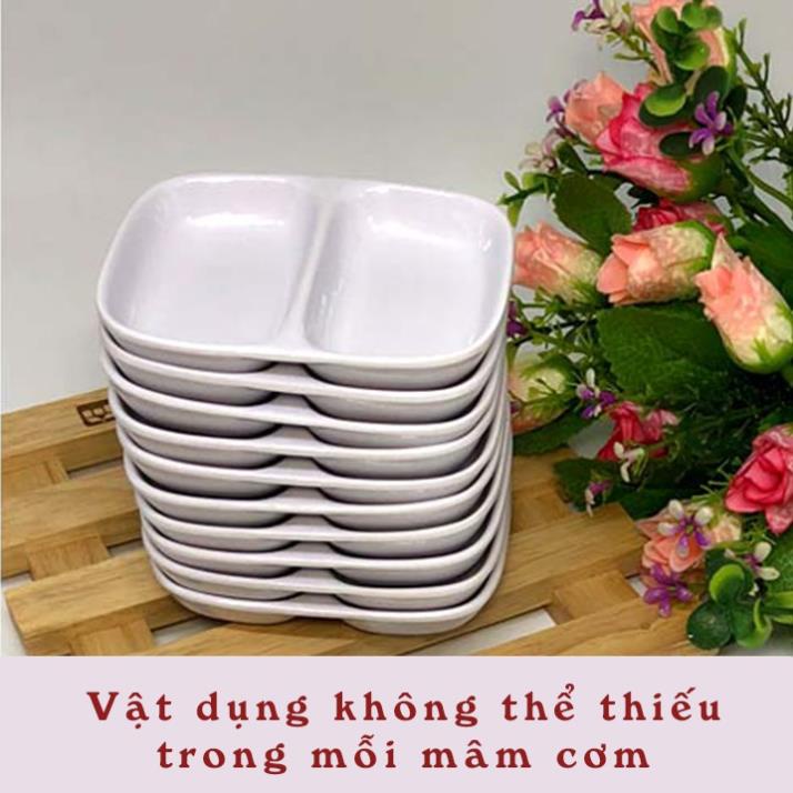COMBO 3 chiếc Đĩa Nhựa loại 2 Ngăn Đựng Gia Vị Cho Nhà Bếp Đĩa Nhựa Phip Đựng Nước Chấm Việt Nhật Plastic No.1205