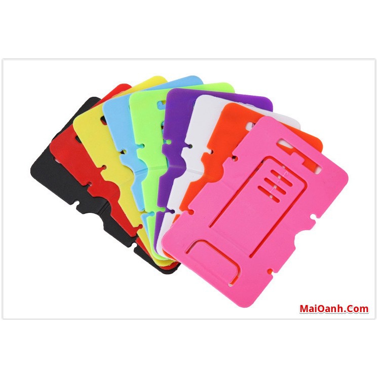 Giá đỡ điện thoại bằng nhựa, nhiều màu sắc được làm theo hình chữ nhật như chiếc thẻ card.Thiết kề thông minh, bình thường giá là dạng như chiếc thẻ ngân hàng, khi cần thiết bạn có thể lắp ráp nó thành chiếc giá để điện thoại.