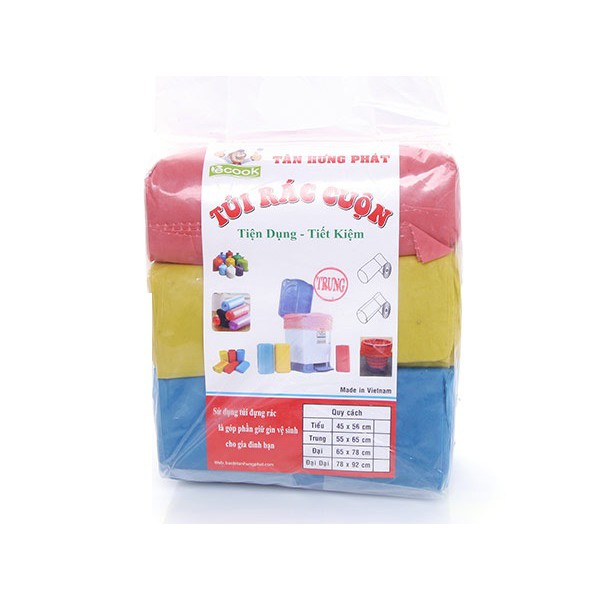 Combo 3 Cuộn Túi Rác Màu Tiết Kiệm Tự Phân Hủy Ecook 65X55cmThông tin sản phẩm: