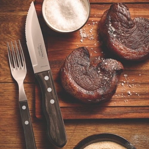 Nhà cửa & Đời sống > Bộ đồ bàn ăn > Bộ dao kéo || Combo 3 Dao Ăn Bò Bít Tết Cán Gỗ Nâu Tramontina Jumbo Polywood 12.2cmCòn hàng