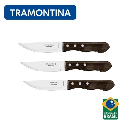 Combo 3 Dao Ăn Bò Bít Tết Cán Gỗ Nâu Tramontina Jumbo Polywood 12.2cm