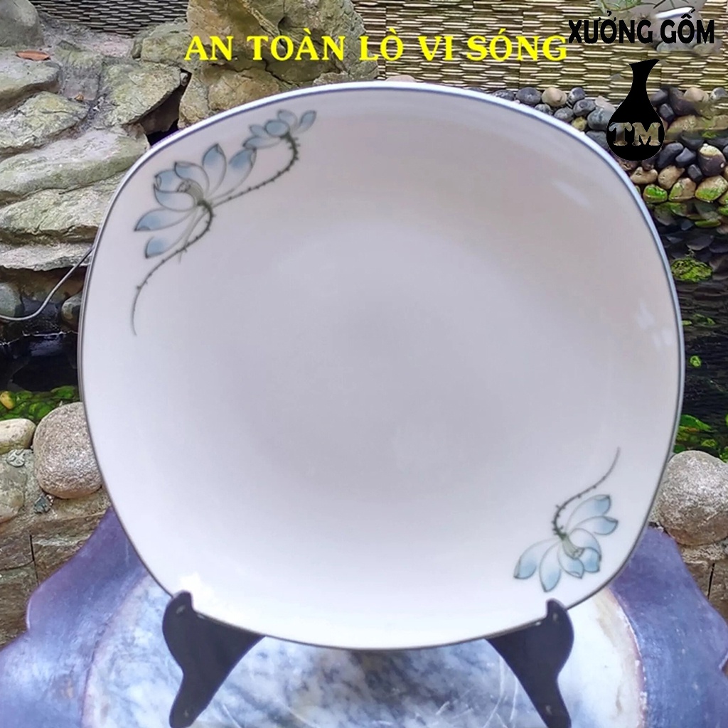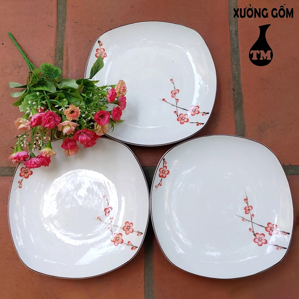 Giới thiệu Combo 3 Đĩa Đựng Thức Ăn Kiểu Dáng Vuông Tròn 22cm Men Trắng Xưởng Gốm TM Bát Tràng