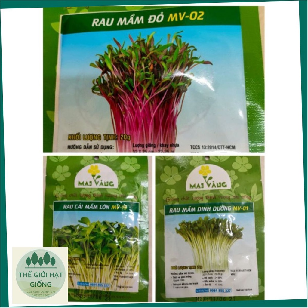 combo 3 gói hạt giống rau mầm (mầm trắng + mầm đỏ +rau mầm lớn)