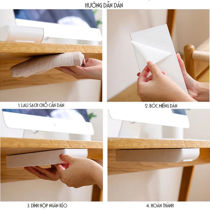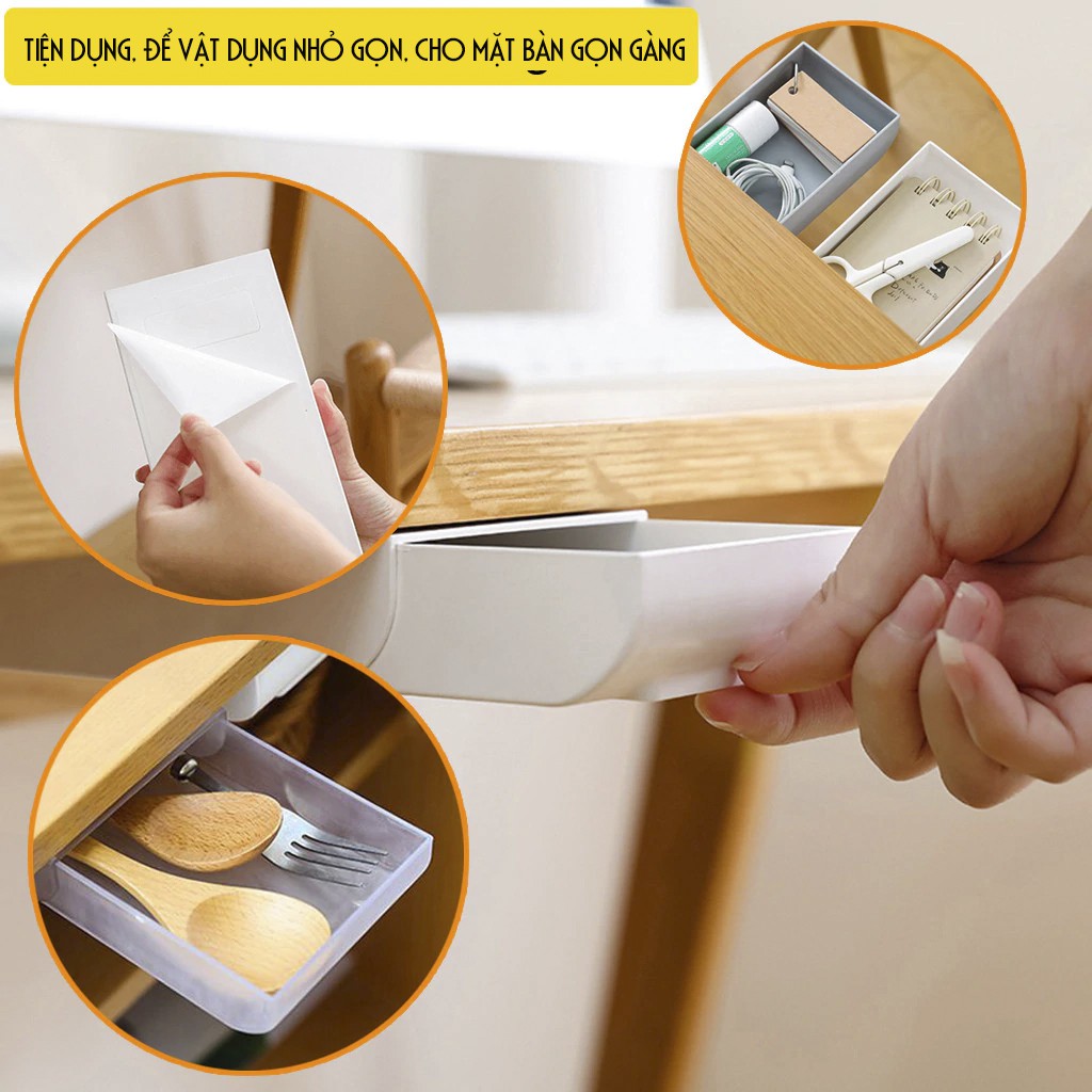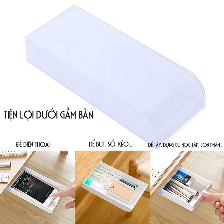 Hộc Dán Ngăn Bàn, Ngăn Kéo Bàn Mini Để Văn Phòng Phẩm, Lưu Trữ Đồ Tiện ÍchHộc dán ngăn bàn có thể chứa rất nhiều thứ như bút, thước kẻ, la bàn, khăn giấy, kéo, điện thoại di động