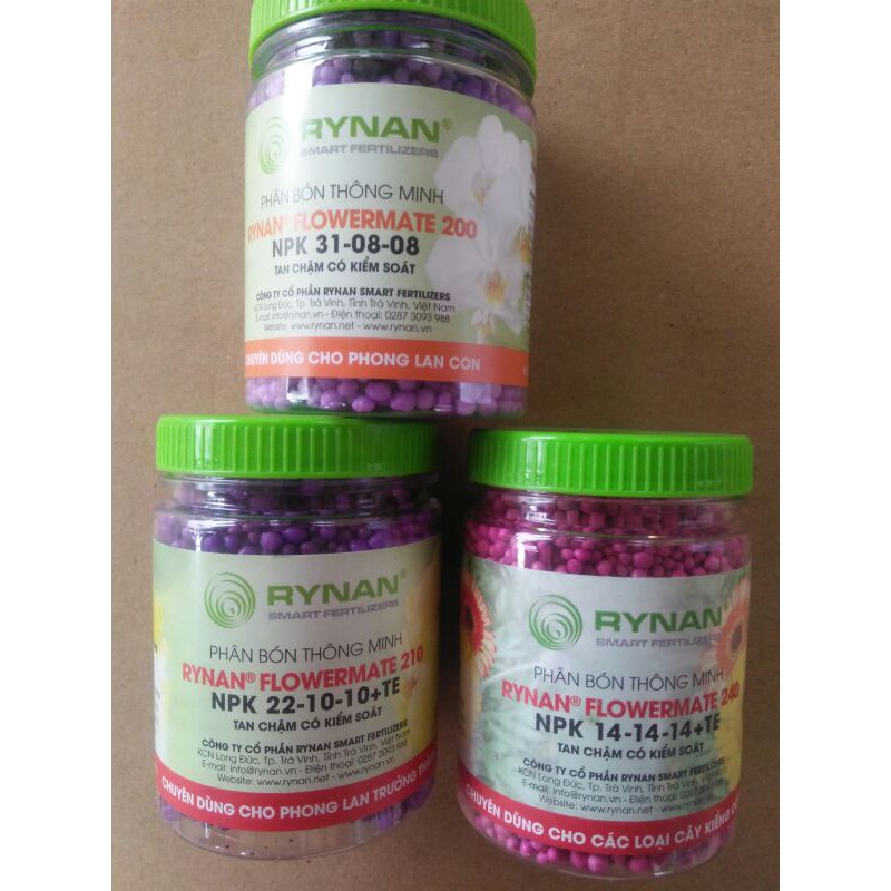 ✔ FLOWERMATE 200 (Rynan NPK 31-08-08) Chuyên dùng cho hoa phong lan lúc mọc mầm✔ FLOWERMATE 210 (Rynan NPK 22-10-10+TE) Chuyên dùng cho hoa phong lan giai đoạn trưởng thành