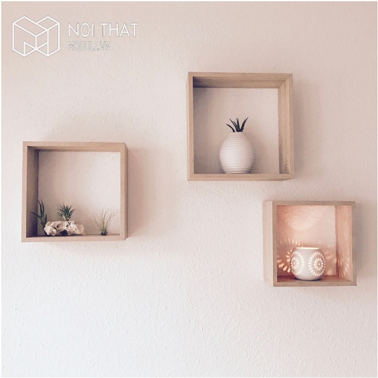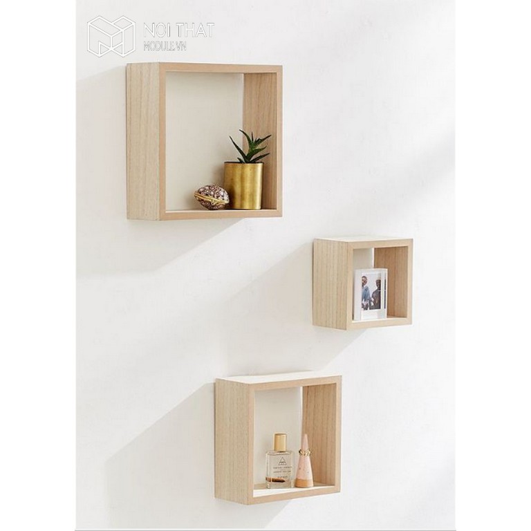 COMBO 3 Kệ Gỗ Vuông Treo Tường, Kệ Trang Trí Treo Tường Gỗ Thông