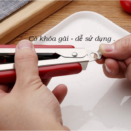 ❆ Thân kẹp bằng thép không gỉ cao cấp cứng cáp giúp thức ăn được kẹp chặt bằng một lực vừa đủ, kể cả thức ăn có kích thước lớn.