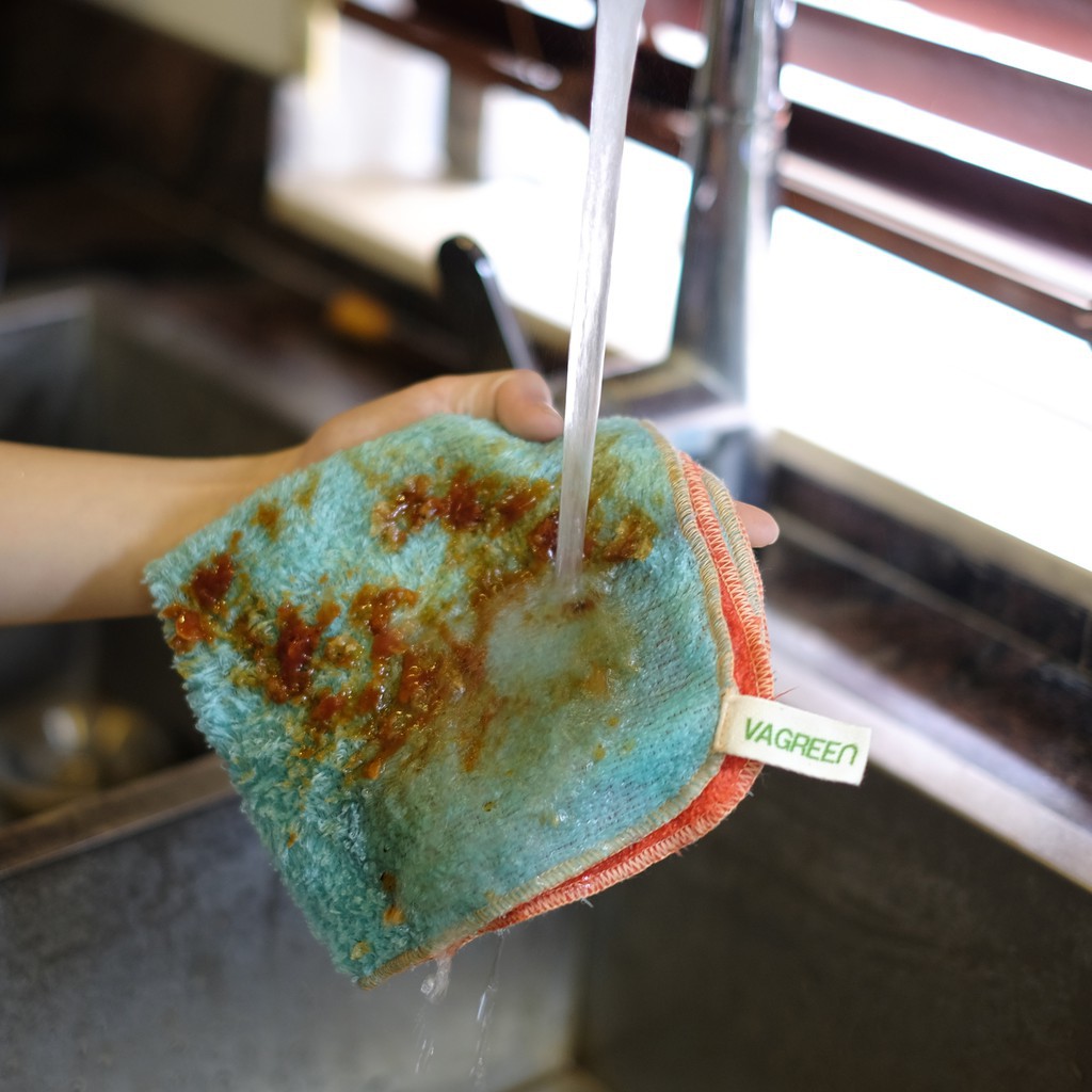 🌻Xả sạch khăn dưới vòi nước để làm sạch.