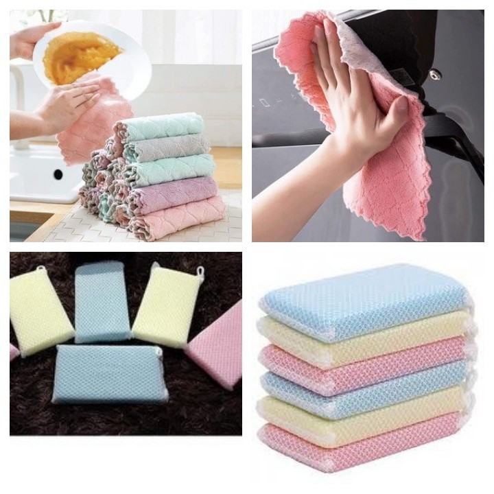 Combo 3 khăn lau tay và 2 mút rửa bát