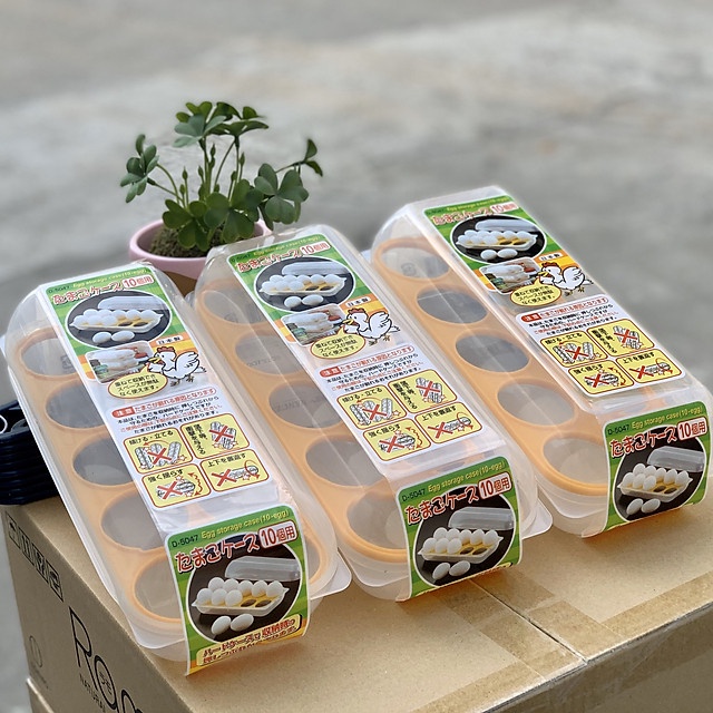 Combo 3 khay đựng trứng 10 ngăn có nắp đậy nội địa Nhật Bản