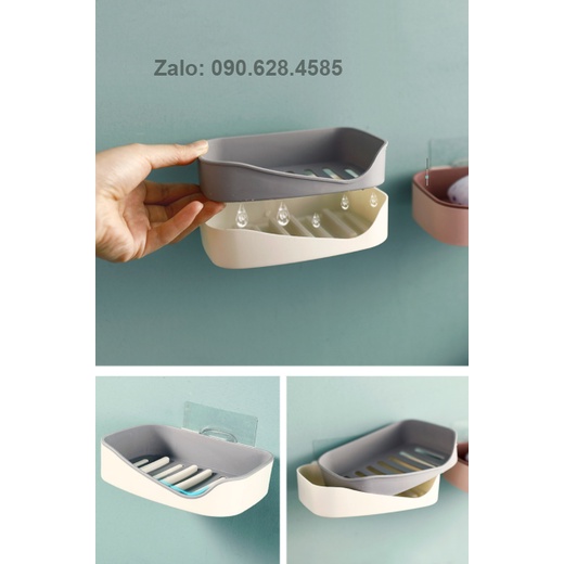 Khay đựng xà phòng nhỏ gọn, tiện dụng.Combo gồm: 1 khay đựng cấu tạo 2 lớp + miếng keo dán tường.