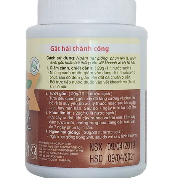 - Phun lên lá làm cây đâm tược mới, làm lớn lá, chống rụng hoa, tăng đậu trái