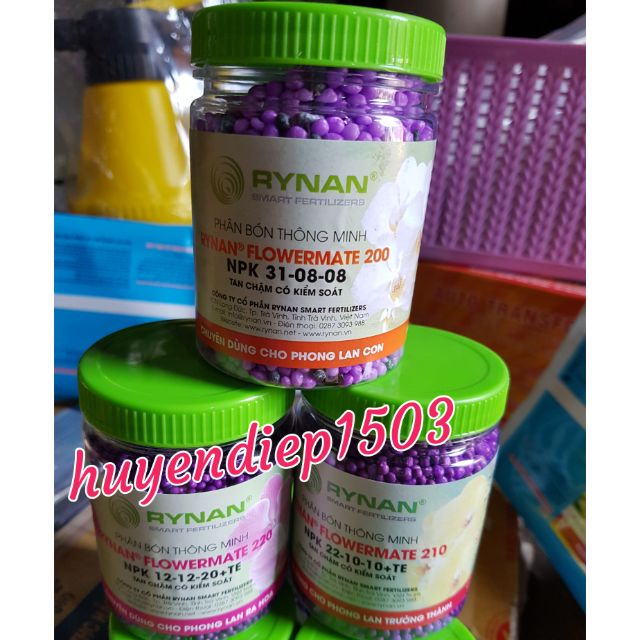 - FLOWERMATE 200 (NPK 31-08-08+CHITOSAN): Chuyên dùng cho hoa phong lan lúc mọc mầm và trưởng thành.