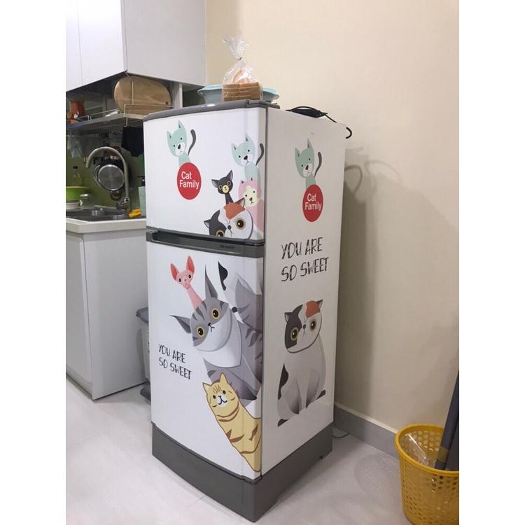 Combo 3 mặt GIA ĐÌNH MÈO (mặt trước và 2 mặt bên) khác nhau - Decal dán tủ lạnh