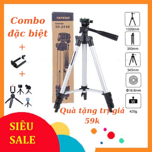Combo 3 món chân đế chụp hình Tripod TF-3110+kẹp điện thoại + chân 288 tiện dụng