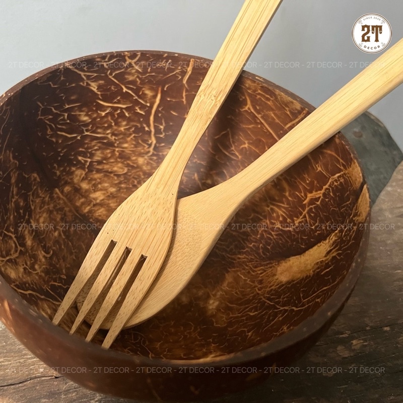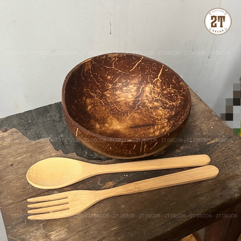 Nhà cửa & Đời sống > Bộ đồ bàn ăn > Tô || Combo 3 món gáo dừa+ muỗng nĩa gỗ tre dùng ăn ngũ cốc , trái cây , trang trí bàn ăn siêu xinhCòn hàng