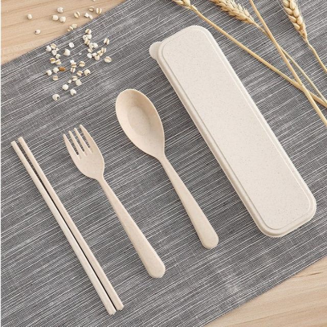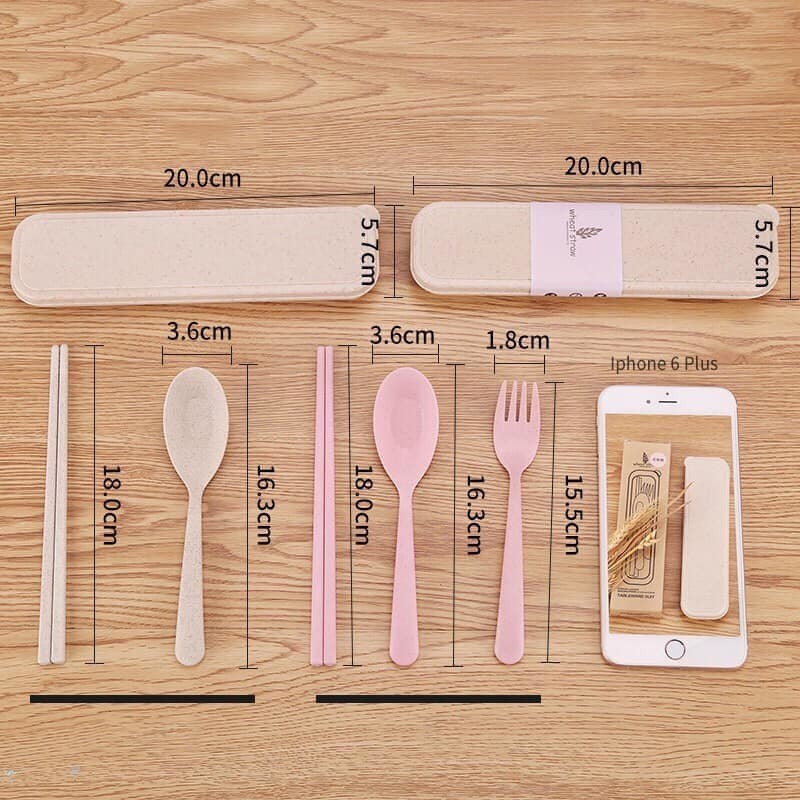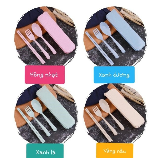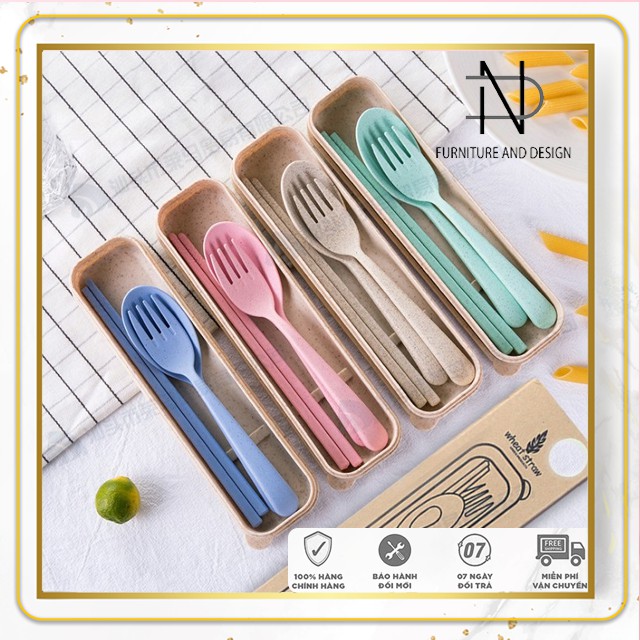 Bộ Đũa Muỗng Nĩa Lúa Mạch đã kèm Hộp Đựng
