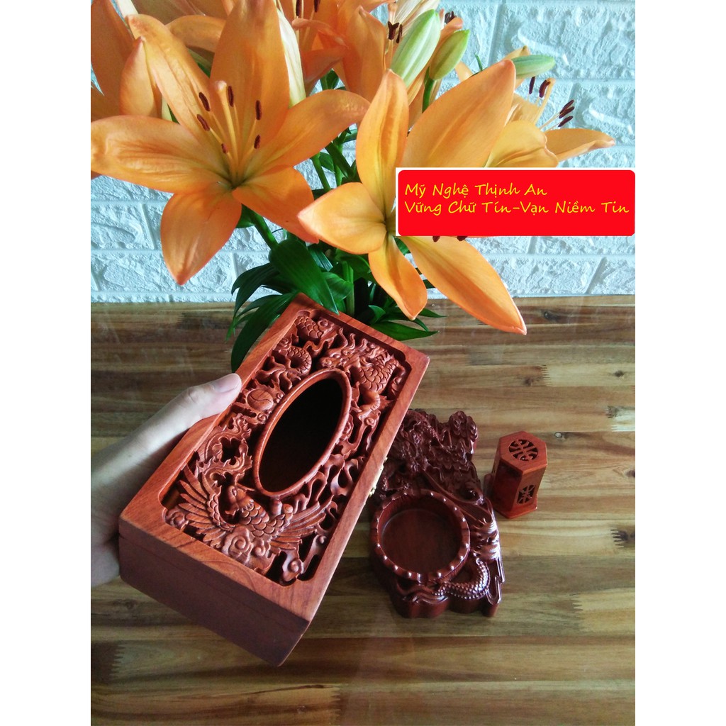 Nhà cửa & Đời sống > Sắp xếp nhà cửa > Hộp khăn giấy || Bộ combo 3 món tiện ích gỗ hương quý ,Hộp khăn giấy,gạt tàn rồng,hũ tăm lọng - 3MGR02Còn hàng