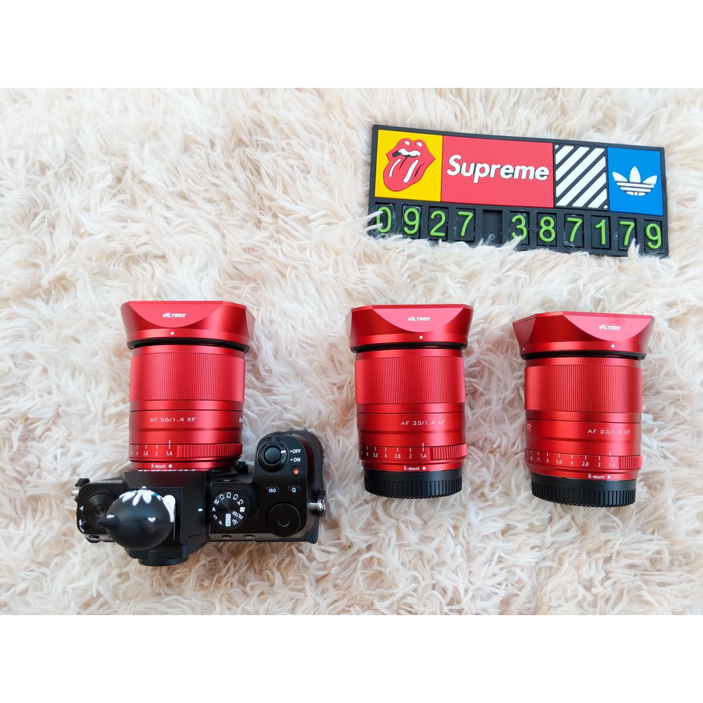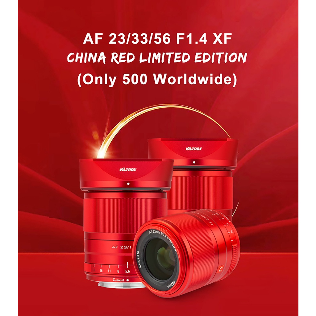 Bộ 3 lens màu đỏ của Viltrox 23mm F1.4 , 33mm F1.4 và 56mm F1.4 các thông số và tốc độ lấy nét sẽ giống như bản màu đen và bạc, chỉ khác nhau về màu sắc và độ hiếm thôi nên các bạn vui lòng Google về thông số của 3 tiêu cự này nha